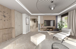Strona główna » Projekt koncepcyjny salonu mieszkania w Berlinie. Wnętrze zaprojektowane dla klienta ceniącego klasykę, ponadczasowość w kontrastowym wydaniu.